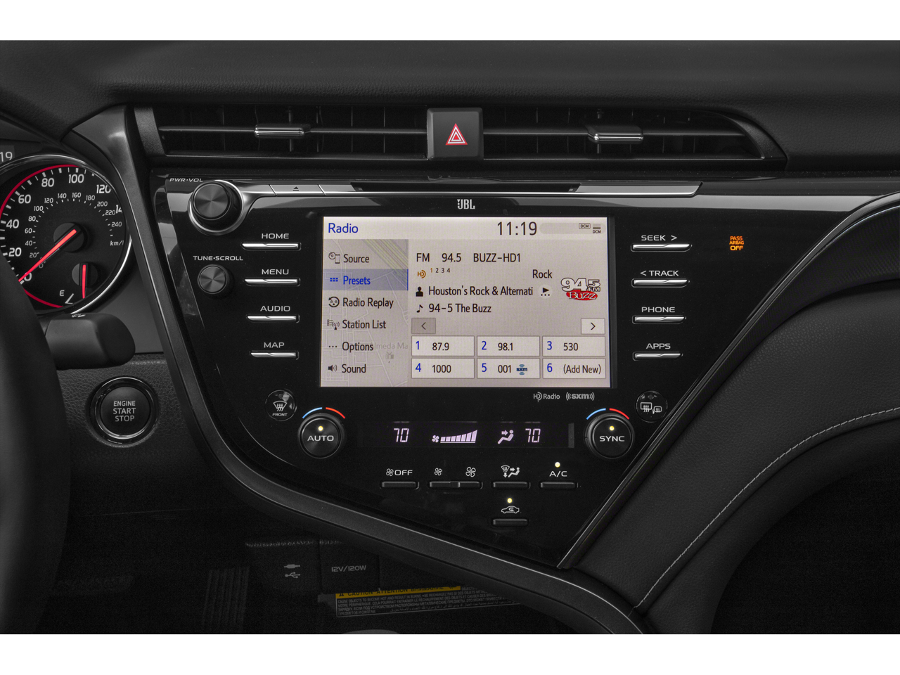 Camry XSE, 4D Sedan, 2.5L I4 DOHC 16V, 8-Speed Automatic, FWD, Black w/Perforated Leather Seat Trim, 6 Speakers, Audio Package, Auto High-beam Headlights, Auto-dimming Rear-View mirror, Automatic temperature control, Brake assist, Electronic Stability Control, Exterior Parking Camera Rear, Fully automatic headlights, Garage door transmitter: HomeLink, Heated door mirrors, Heated front seats, Illuminated entry, Leather Shift Knob, Low tire pressure warning, Multi-Stage Heated Front Bucket Seats, Outside temperature display, Panoramic Roof, Perforated Leather Seat Trim, Power door mirrors, Radio: Entune 3.0 Audio Plus, Remote keyless entry, Security system, Speed-sensing steering, Spoiler, Steering wheel mounted audio controls, Telescoping steering wheel, Turn signal indicator mirrors, Wheels: 8.0J x 19" Black Machined-Finish Alloy.