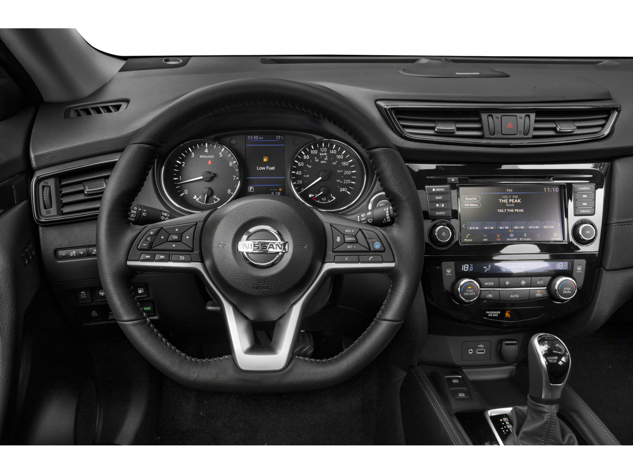 Rogue SL, 4D Sport Utility, 2.5L I4 DOHC 16V, CVT with Xtronic, AWD, Gun Metallic, Charcoal Leather, 19" Aluminum Alloy Wheels, 9 Speakers, Anti-whiplash front head restraints, Auto High-beam Headlights, Auto-dimming Rear-View mirror, Automatic temperature control, Blind Spot Warning, Bose Audio, Brake assist, Electronic Stability Control, Emergency communication system: NissanConnect Services, Exterior Parking Camera Rear, Front fog lights, Fully automatic headlights, Garage door transmitter: HomeLink, Heated door mirrors, Heated Front Bucket Seats, Heated steering wheel, Illuminated entry, Lane Departure Warning System, Leather Shift Knob, Leather-Appointed Seat Trim, Low tire pressure warning, Memory seat, Navigation System, NissanConnect featuring Apple CarPlay and Android Auto, Outside temperature display, Power Liftgate, Radio: AM/FM/CD/AUX NissanConnect w/Navigation, Rear Parking Sensors, Remote keyless entry, Security system, Speed-sensing steering, Spoiler, Steering wheel mounted audio controls, Telescoping steering wheel, Turn signal indicator mirrors.