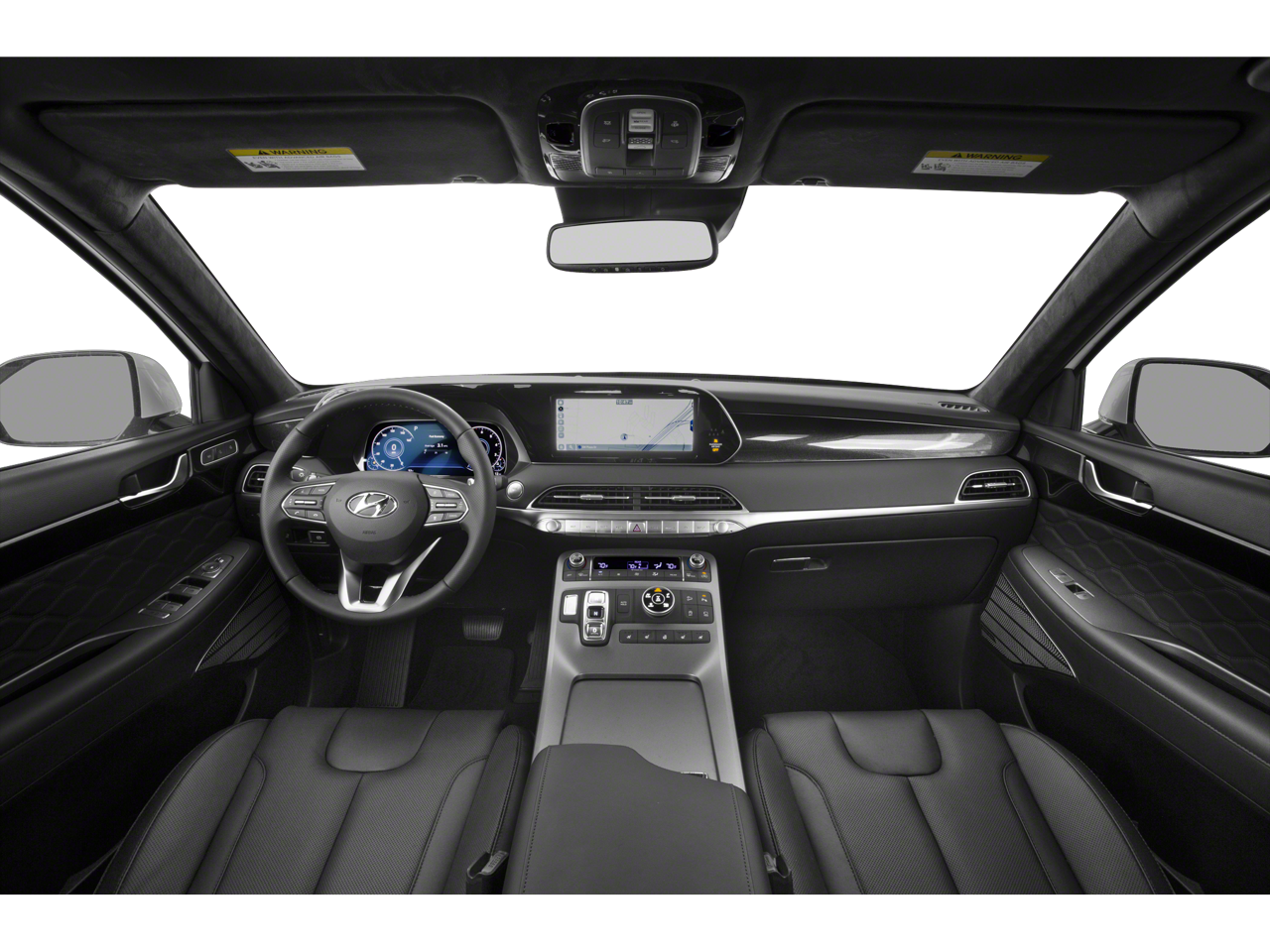 Palisade Calligraphy, 4D Sport Utility, V6, 8-Speed Automatic with SHIFTRONIC, AWD, Hyper White, Navy/Beige Leather, 3rd row seats: split-bench, Apple CarPlay & Android Auto, Auto High-beam Headlights, Auto-dimming Rear-View mirror, Auto-leveling suspension, Automatic temperature control, Brake assist, Cargo Block, Cargo Net, Cargo Package, Cargo Tray, Electronic Stability Control, Emergency communication system: Blue Link Connected Car Service (3-year complimentary subscription), Fully automatic headlights, Garage door transmitter: HomeLink, harman/kardon® Speakers, Heads-Up Display, Heated & Ventilated Front Bucket Seats, Heated door mirrors, Heated steering wheel, Illuminated entry, Low tire pressure warning, Navigation System, Option Group 01, Outside temperature display, Power Liftgate, Power moonroof, Premium Nappa Leather Seat Trim, Radio: AM/FM/MP3 Premium Audio System, Rain sensing wipers, Rear air conditioning, Rear window wiper, Reclining 3rd row seat, Remote keyless entry, Security system, Speed-sensing steering, Spoiler, Steering wheel mounted audio controls, Telescoping steering wheel, Turn signal indicator mirrors, Wheels: 20" x 7.5J Calligraphy Exclusive Alloy.