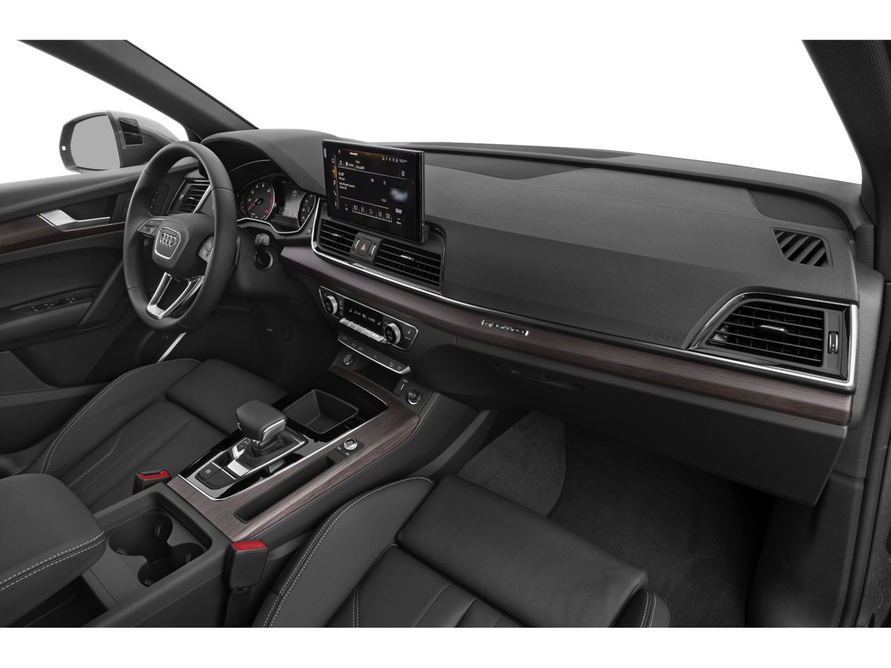Q5 45 S line Premium quattro, 4D Sport Utility, 2.0L Turbocharged, 7-Speed Automatic S tronic, quattro, Daytona Gray Pearl, Black Leather, 10 Speakers, All-Weather Floor Mats, Audi Active Lane Assist, Audi Advanced Key, Audi Beam-Rings, Audi Connect PLUS, Audi Guard Protection Kit, Audi Virtual Cockpit Plus, Auto-Dimming Power Folding Exterior Mirrors, Auto-dimming Rear-View mirror, Automatic temperature control, Bang & Olufsen Sound System w/3D Sound, Brake assist, Cargo Mat, Convenience Package, Delay-off headlights, Driver Seat Memory, Electronic Stability Control, Emergency communication system: Audi connect CARE, Exterior Parking Camera Rear, Front Bucket Seats, Front fog lights, Garage door transmitter: HomeLink, Genuine wood console insert, Genuine wood dashboard insert, Genuine wood door panel insert, Hands-On Detection Steering Wheel, Heated & Cooled Front Cup Holder, Heated front seats, Heated Steering Wheel, Illuminated entry, Illuminated Front Audi Rings, Integrated Toll Module Delete (DISC), Leather Seating Surfaces, Leatherette Covered Center Console & Door Armrests, Low tire pressure warning, Manual Rear Side Window Sunshades, MMI Navigation Plus, Navigation Package, Outside temperature display, Panoramic Sunroof, Power Adjustable Steering Column, Power Liftgate, Premium Plus Package, Radio: Audi Sound System, Rain sensing wipers, Rear air conditioning, Rear fog lights, Rear window wiper, Remote keyless entry, Security system, SiriusXM w/360L, Speed-sensing steering, Speed-Sensitive Wipers, Spoiler, Steering wheel mounted audio controls, Telescoping steering wheel, Top View Camera System, Traffic Jam Assist, Turn signal indicator mirrors, Ventilated Front Sport Seats w/4-Way Power Lumbar, Warm Weather Package, Wheels: 20" 5-Arm Design.