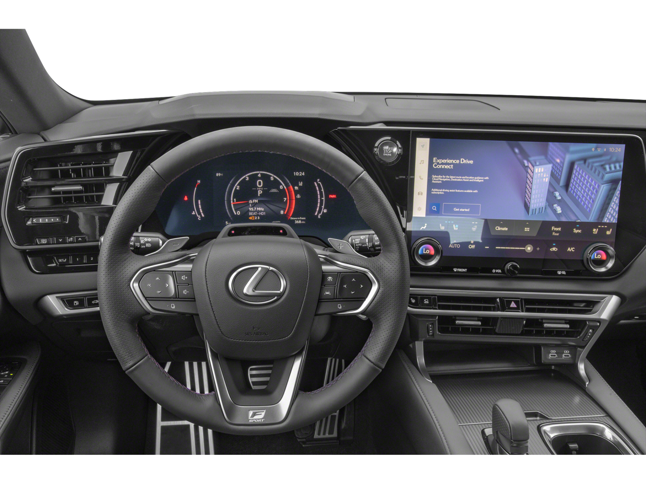 RX 350 F Sport Handling, 4D Sport Utility, 2.4L I4 PDI Turbocharged DOHC 16V LEV3-SULEV30 275hp, 8-Speed Automatic, AWD, Black Nuluxe Dark Gra Artificial Leather, 12 Speakers, 8-Way Power Driver & Front Passenger Seat Adjusters, Adaptive suspension, Auto High-beam Headlights, Auto tilt-away steering wheel, Auto-dimming door mirrors, Auto-dimming Rear-View mirror, Auto-leveling suspension, Automatic temperature control, Brake assist, Cold Area Package, Convenience Package, Cross Bars, Electrochromic Heated Outside Rearview Mirror, Electronic Stability Control, Emergency communication system: Safety Connect (10-year trial), Exterior Parking Camera Rear, F SPORT Handling Package, F SPORT NuLuxe Seat Trim, Front fog lights, Fully automatic headlights, Garage door transmitter: HomeLink, Genuine wood console insert, Heads-Up Display, Heated & Ventilated Front Bucket Seats, Heated F SPORT Steering Wheel w/Paddle Shifters, Illuminated entry, Lane Change Assist w/Lane Keeping Assist System, Leather Shift Knob, Leather steering wheel, Low tire pressure warning, Navigation System, Outside temperature display, Power Liftgate, Power moonroof, Premium Paint (PJ), Premium Triple-Beam LED Headlamps, Quick Charging Cables-Mobile, Radio: Lexus Interface w/14" HD Touchscreen Display, Rain sensing wipers, Rear air conditioning, Rear window wiper, Remote keyless entry, Security system, Speed-sensing steering, Spoiler, Steering wheel memory, Steering wheel mounted audio controls, Technology Package, Telescoping steering wheel, Turn signal indicator mirrors, Wheels: 21", Wireless Apple CarPlay/Wireless Android Auto.